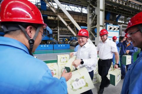 8月5日,中国宝武工会主席张贺雷一行来太钢慰问一线职工,并召开调研座谈会。太钢集团工会主席孟永全参加。