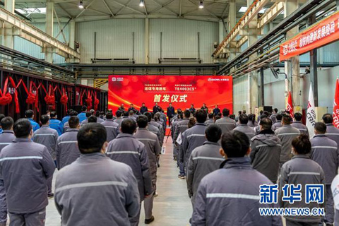 70t级新型复合材料运煤专用敞车、高强耐蚀不锈钢复合材料TE4003C5®首发仪式。新华网 发(马梦迪 摄)