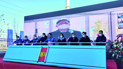 图为出席现场仪式的领导共同见证项目正式竣工投产。 于晨民 摄