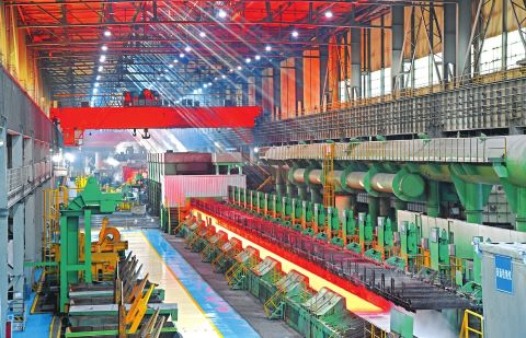 一卷卷钢材成品排列整齐,3台轧机隆隆作响,操作机器的人却难觅踪影。“现在车间自动化的程度非常高,几乎大部分的工作都由机器完成。”2号轧机前,安全生产部部长房旭回答着记者的疑问,“你看这台轧机,它的启动和暂停其实并不在这里操作,而是在旁边的智慧化集中控制中心实现的。工作人员在操作的同时,那边的系统还能同步记录下实时的数据,为后续的工序优化和材料研发提供支持。”房旭所说的智慧化集中控制中心,投用于去年10月,除了“一键启停”,还实时记录着整个车间的能源消耗和安全生产情况。