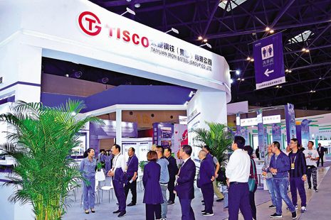 太钢展区主要由绿色产品、尖端材料以及节能环保技术三大特色版块构成,突显了太钢全力打造精品基地、绿色钢城、和谐家园的坚定决心。绿色产品版块以图文并茂的方式,介绍了太钢助力环保产业升级,不锈钢产品成功应用于烟气脱硫、污水处理、海水淡化等领域的典型案例。尖端材料展区展示了T800碳纤维、新能源电动汽车用不锈钢、笔尖用钢、不锈钢精密带钢、镍基耐热合金等一大批高精尖产品实物,彰显了太钢雄厚的研发实力和产品的独特竞争力。在节能环保技术展区,重点推介了太钢在废气、废水、废渣、废酸资源化综合利用中采用的先进循环经济技术,充分展示了太钢为推进绿色发展所作出的不懈努力和取得的显著成果。大批客商和参会人士在太钢展区驻足,表现出对太钢新产品、新技术的浓厚兴趣。
