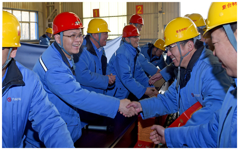 1月24日至25日,在新春佳节即将来临之际,太钢集团党委副书记、副董事长、总经理高建兵率队深入太钢复合材料厂、峨口铁矿和尖山铁矿的采场、磨选等生产一线看望慰问干部职工,并与大家进行座谈交流,勉励矿山干部职工解放思想,拓宽思路,继续保持干事创业的工作激情,积极探索降本新途径,奋力打赢矿山降本攻坚战,为推动新时代太钢高质量发展作出新贡献。太钢集团副总经理马法成,公司相关部门负责人参加慰问。