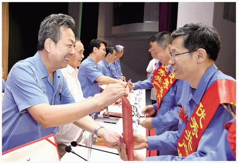 图为公司领导为优秀党员标兵颁奖。  王旭宏
