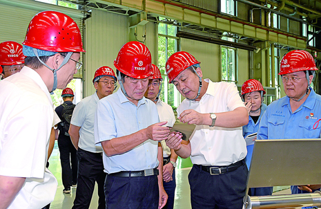 8月24日,科技部副部长、党组成员徐南平一行到太钢精密带钢公司调研科技创新工作。山西省科技厅副厅长、党组成员牛青山,太原市委常委、常务副市长王立刚等陪同。太钢集团党委书记、董事长高祥明,太钢集团总工程师李建民参加。