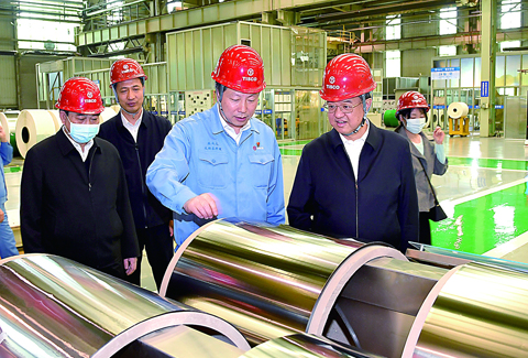 4月22日,海关总署署长、党委书记、海关总监倪岳峰在山西省副省长卢东亮的陪同下,到山西太钢不锈钢精密带钢公司进行调研。太钢集团总经理、党委副书记魏成文及相关单位负责人参加。