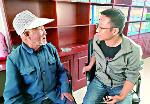 太钢帮扶村脱贫户段绪拴在工作队帮助下治好了白内障,老人向第一书记王君山表达感激之情。 杨泽宇 摄