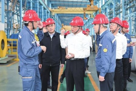 5月23日,宝武总经理、党委副书记胡望明到太钢集团宝钢德盛,深入现场了解生产经营、绿色低碳、极致成本和极致效率推进情况,看望慰问一线干部员工,并与公司管理团队座谈交流。胡望明指出,面对当前钢铁行业的严峻形势,宝钢德盛要按照集团公司“全面对标找差、追求极致效率”的管理要求,坚定信心、全员联动,切实提升体系能力和市场竞争力,并充分发挥混合所有制企业的体制机制优势,坚决打赢生存保卫战。