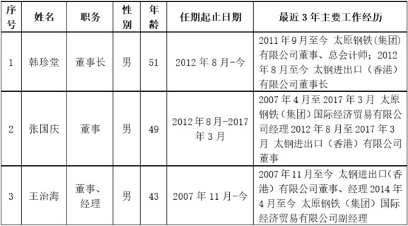 香港公司是太原钢铁(集团)有限公司(以下简称“公司”)和太原钢铁(集团)国际经济贸易有限公司(以下简称“国贸公司”)于1997年1月共同出资设立的有限责任公司,注册资本金24784万美元。其中公司出资21813万美元、占比88%;国贸公司出资2971万美元、占比12%。注册地址为香港金钟道89号力宝中心一座2601室,董事长韩珍堂,经理王治海。