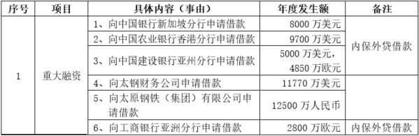 2014年太原钢铁(集团)有限公司以现金向太钢进出口(香港)有限公司增资116289万港币。