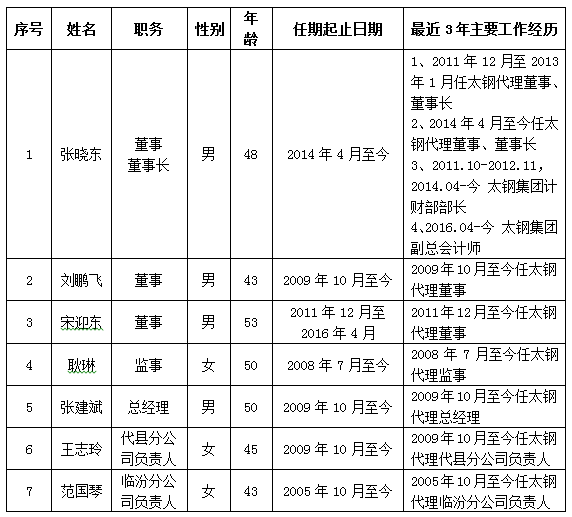 1、太钢代理董监事、高管等领导人员公务用车配备情况: