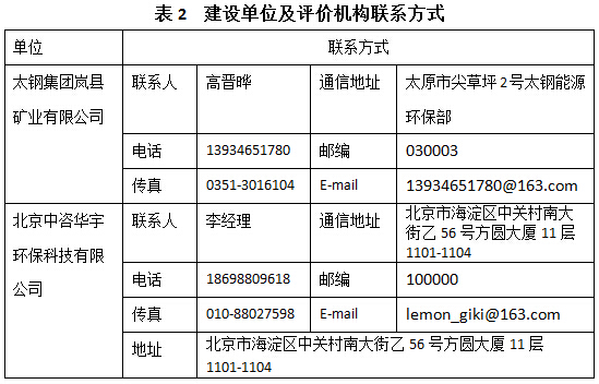 公众如认为必要,可采取上门、信函、电话、电子邮件、传真等方式向建设单位或环评机构索取补充信息,索取信息时,公众应明确索要索取补充信息的类型,并提供姓名、联系方式等,以便建设单位或环评机构及时反馈有关信息。建设单位及环评机构联系方式如表2所示: