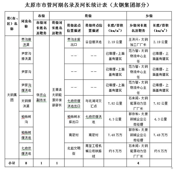 按照《太原市全面推行河长制实施方案》工作的要求,现公开太钢代管河湖名录及河长名单如下: