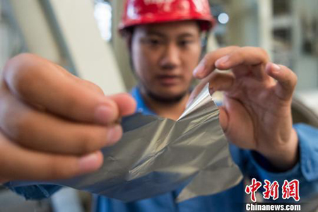 这种超薄的不锈钢主要应用在航空航天、石油化工、汽车、电子、家电、计算机等领域。 韦亮 摄