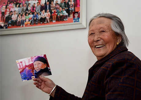 画面中这位老人叫陈福姐,是山西娄烦县马家庄乡河北庄村村民。她手举的这张照片是《中国冶金报》特约通讯员在2009年11月23日抓拍的。当天,太钢向山西贫困县娄烦县捐赠1万吨原煤,陈福姐老人看到开进村里的运煤车后,不禁开心地笑了。
