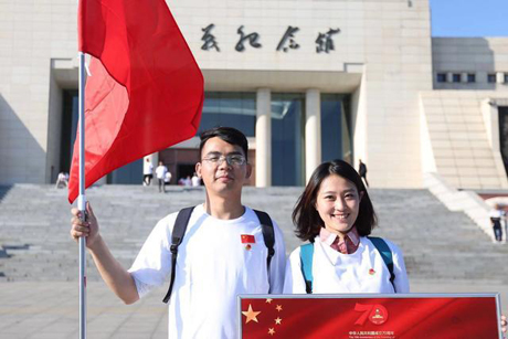 在百团大战纪念馆和纪念碑前,青年工人们齐唱国歌,进行国旗下的演讲,他们重温入团誓词,在配乐中合唱“我和我的祖国”,并大声喊出对祖国的爱。这些精心设计的环节,让主题团日的活动充满仪式感。尤其在百团大战纪念馆前,青工们列队摆出数字“70”和太钢Logo “TICSO”,向祖国深情告白。展现了当代青年与祖国同呼吸、与时代共奋进的爱国主义情怀和昂扬向上的太钢青年精神风貌。