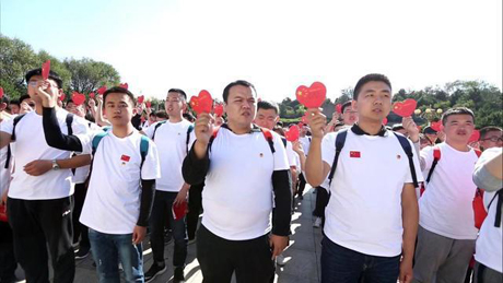 为庆祝中华人民共和国成立70周年,大力唱响礼赞新中国、奋进新时代的青春主旋律,9月21日,共青团太原钢铁(集团)有限公司,组织开展“我与祖国共奋进——国旗下的演讲”特别主题团日活动。来自太钢一线的180多名青年工人赴阳泉娘子关革命烈士纪念碑和狮脑山百团大战纪念馆参观学习。他们齐唱国歌,列队摆出数字“70”和太钢Logo “TICSO”,向祖国深情告白。