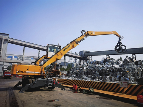 图为抓钢机在进行废钢装卸作业。丁洁 摄